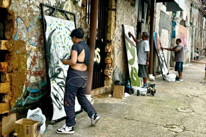 A artista visual, muralista e pesquisadora, Wira Tini, destacou a importância dos artistas locais participarem da ação realizada durante a Feira de Natal do Booth Line.