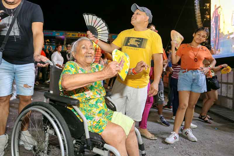 Já a aposentada e cadeirante Vivaldina Andrade, 87 anos, não perde um #SouManaus e, nesta edição, estava ansiosa pelo show do padre Fábio de Melo, no palco Bradesco – Guardião da Amazônia. Católica e moradora do bairro Betânia, ela, que teve nove filhos e já perdeu a conta de quantos netos e bisnetos têm, veio com o neto Jean Andrade, 33, analista de Recursos Humanos. Enquanto na terça-feira (5/9), Jean curtia o internacional David Guetta, hoje estava com a avó, aproveitando o festival em família. E se “dona Vida”, como é carinhosamente chamada pela família, pudesse escolher uma atração para assistir em 2024, seria Julio Iglesias. Já Jean gostaria de ter um Djavan ou Roupa Nova nos palcos.