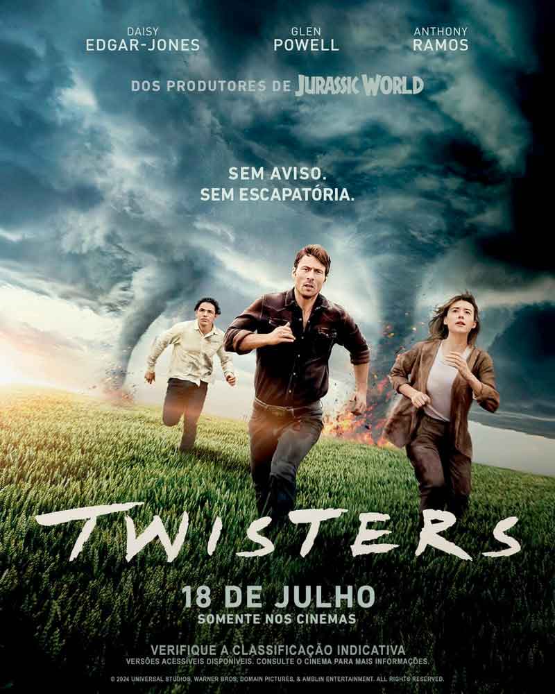Apesar de rivais, eles acabam unidos pelo desejo de prever, perseguir, estudar e controlar o poder imenso dos tornados, enfrentando desafios que testam seus limites e os levam a uma jornada de autodescoberta e coragem. Twisters promete uma emocionante jornada repleta de ação, suspense e adrenalina, onde a bravura é medida pelo tamanho do tornado que enfrentam.