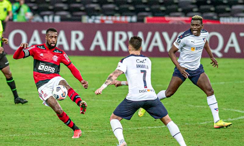 Mas a alegria do Flamengo durou apenas três minutos, pois a LDU conseguiu a igualdade rapidamente, graças a um gol de cabeça do zagueiro Guerra. E novamente em lance pelo alto, mas aos 14 minutos da etapa final, o time equatoriano virou o marcador. Muñoz cruzou, Amarilla ajeitou e Johjan Julio bateu de direita. Este foi o 13º gol que o Flamengo sofreu em 2021 em jogada aérea.