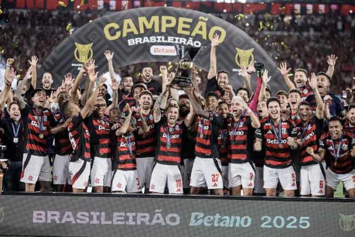 Em uma temporada quase perfeita, o Flamengo conquistou mais um título. Nesta quarta-feira, dia 3 de dezembro, o Rubro-Negro venceu o Ceará por 1 a 0, no Maracanã lotado, e garantiu o seu nono título brasileiro. O gol de Samuel Lino assegurou a “dobradinha” histórica, somando a taça do Brasileirão à da Libertadores, conquistada recentemente.