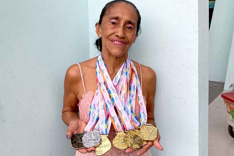 Teve atleta na Vila Olímpica, levando sete medalhas para casa. Uma verdadeira papa títulos. Veterana nos jogos, Antônia Braga, de 68 anos, que representou o núcleo do Japiim, arrastou as seguintes premiações: ouro no vôlei, no tênis de mesa, na corrida de 50 metros, caminhada e revezamento; além de prata na natação, e bronze na argola.