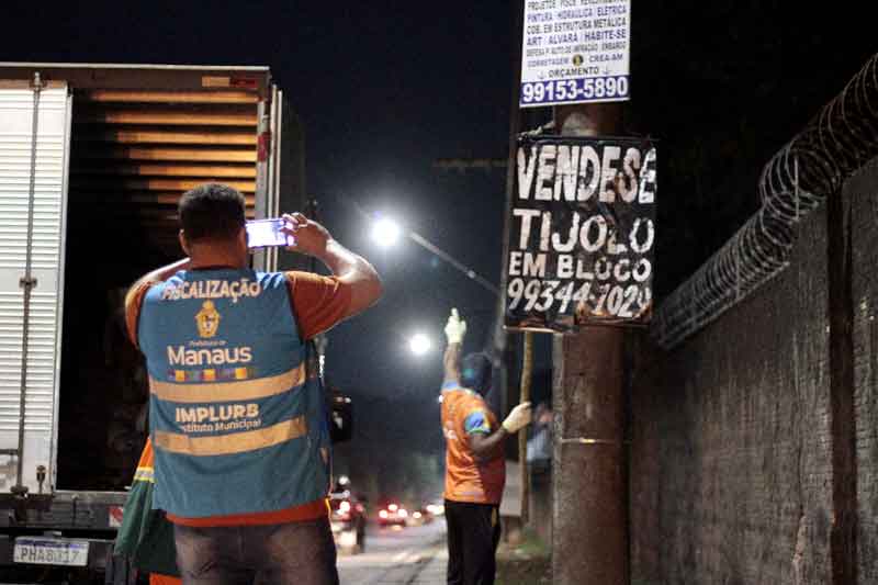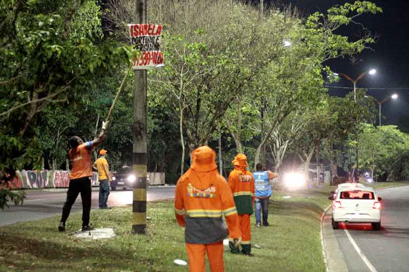 A primeira operação foi realizada na noite desta segunda-feira, 10/10, em ruas da Ponta Negra, zona Oeste, incluindo a Cecília Meirelles, as avenidas do Turismo e Coronel Teixeira. As equipes da Prefeitura de Manaus retiraram dos postes mais de 50 galhardetes, que são pendurados e são proibidos por lei (Plano Diretor) e duas placas de estacionamento.