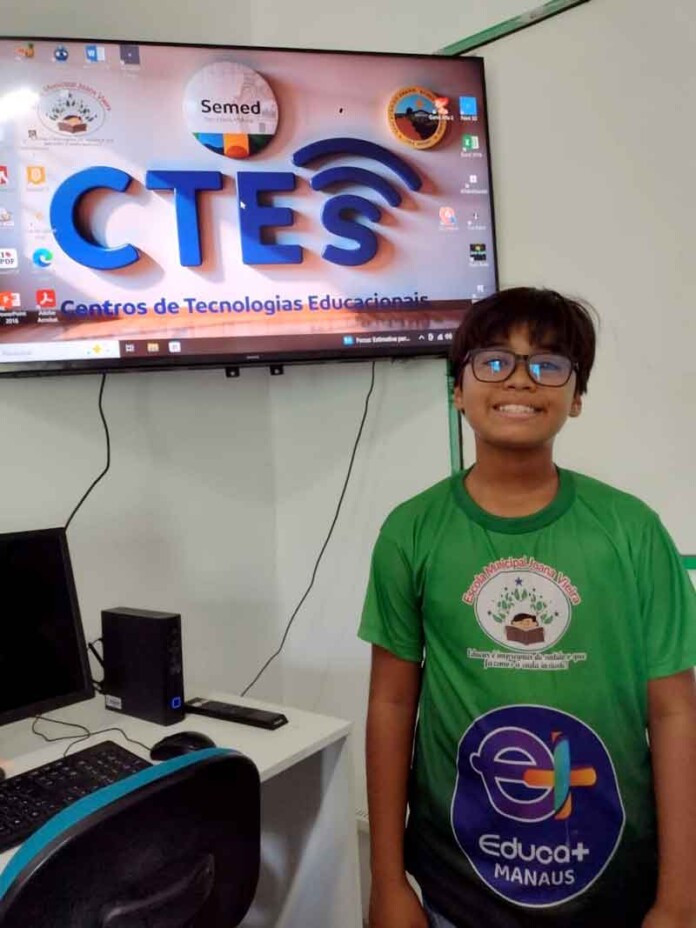 O estudante Kevem Miller Oliveira da Silva, de 11 anos, aluno do 5º ano do ensino fundamental da escola municipal Joana Vieira, da Prefeitura de Manaus, conquistou uma vaga na fase nacional da Olimpíada Brasileira de Informática (OBI). A escola está localizada no quilômetro 32, do ramal Água Branca 1, na rodovia AM-010. A competição acontecerá entre os dias 20 e 27 de setembro.