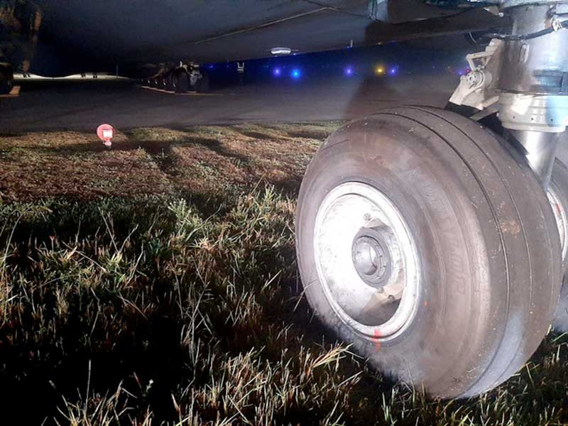 No entanto, minutos depois, ficou claro que não seria um trabalho tão simples, pois, aparentemente, a aeronave havia perdido seu ponto de virada na última saída da pista e teria ficado travada na grama, sem conseguir sair, fechando a pista 09L. Lembrando que se trata de um avião crítico por seu tamanho, de modo que manobrá-lo requer uma dose extra de atenção.
