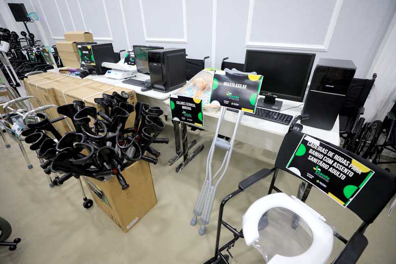 Entre os equipamentos entregues constam 60 cadeiras de rodas adulto padrão; sete cadeiras de rodas juvenil; 15 cadeiras de rodas para banho tipo obeso (acima de 90kg); 10 cadeiras de rodas para banho com assento sanitário adulto; três carrinhos especiais para criança com deficiência; duas cadeiras de rodas motorizadas; 50 bengalas canadenses; 200 muletas axilar; 20 muletas simples em T; 130 bengalas articuladas para pessoas com deficiência visual; 20 órteses suropodálicas; 50 andadores adulto e infantil; 20 óculos; 10 colares cervical minerva.