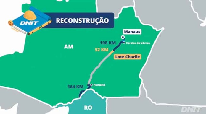 A BR-319/AM/RO liga Manaus, no Amazonas, a Porto Velho, em Rondônia. Já o segmento a ser pavimentado vai do km 198 ao km 250 e possui licença ambiental. Serão investidos R$157,5 milhões para realização dos trabalhos. Esse pedaço da estrada é conhecido como Trecho C – ou Lote Charlie – e amplia a conexão com a capital, Manaus, permitindo mais rapidez para acesso a suprimentos e saúde. Ele antecede o chamado Trecho do Meio, que adentra pela região mais densa da floresta amazônica.