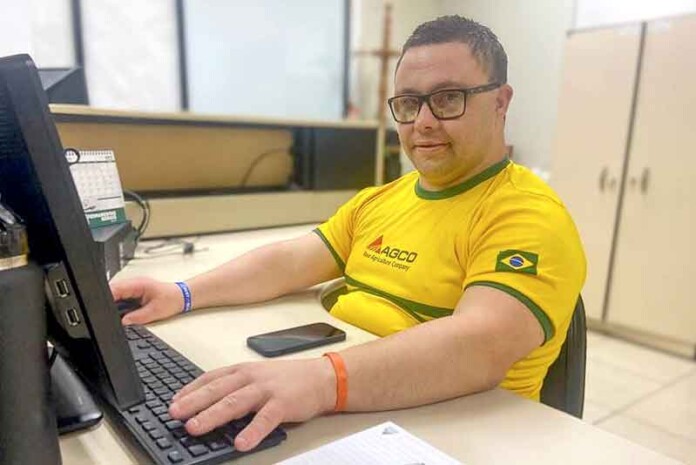Com quase duas décadas dedicadas à fábrica da AGCO, em Santa Rosa (RS), Vinícius Bender, 39 anos, é exemplo de como a inclusão no ambiente corporativo pode fortalecer equipes. Colaborador com síndrome de Down, Vinícius iniciou sua trajetória na empresa em 2005, alocado na recepção. Anos depois, foi promovido ao setor de Recursos Humanos, onde atua até hoje como prático de produção, sendo responsável por tarefas como organização de malotes, confecção de cartões de aniversário, gestão de vale-transporte e apoio administrativo.