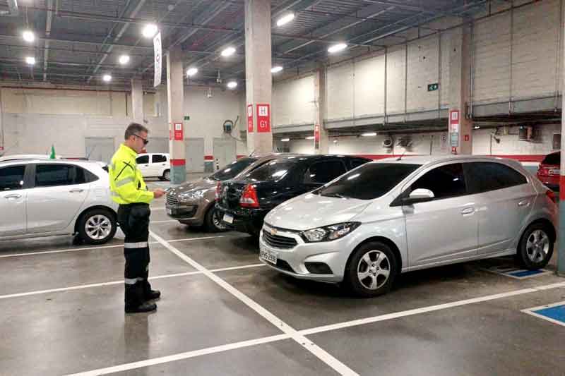 Pela parte da tarde, agentes do IMMU realizaram fiscalização na área de vagas especiais de um shopping na zona Oeste, para verificar se as vagas preferenciais de idosos e pessoas com deficiência estavam sendo usadas corretamente por pessoas portadoras da credencial.