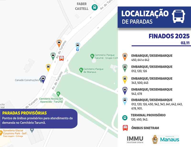 O Instituto Municipal de Mobilidade Urbana (IMMU) atuará com 203 agentes de trânsito e fiscais de transporte no gerenciamento e organização do tráfego nas imediações dos cemitérios de Manaus no feriado de Dia de Finados, domingo, 2 de novembro.
