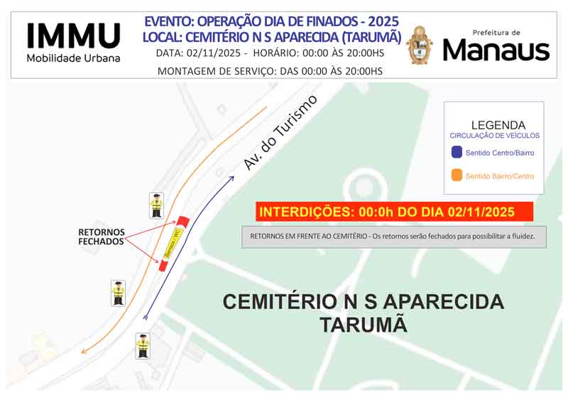 - Os retornos localizados em frente ao cemitério serão interditados.