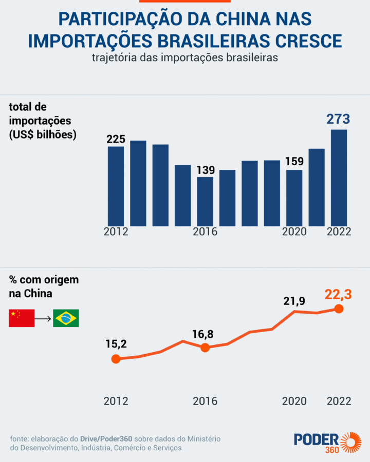 As importações da China atingiram R$ 60,7 bilhões em 2022. O maior valor desde 2012.