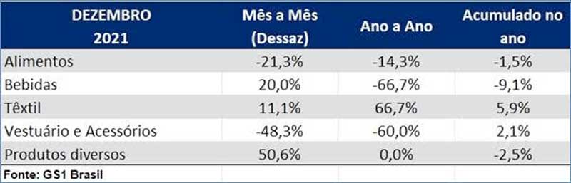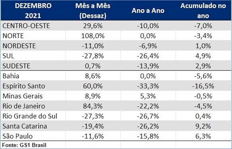 Na comparação com dezembro de 2020, apresentou queda de 5,5% e no acumulado do ano, uma queda de 0,3% com relação ao mesmo período do ano anterior.