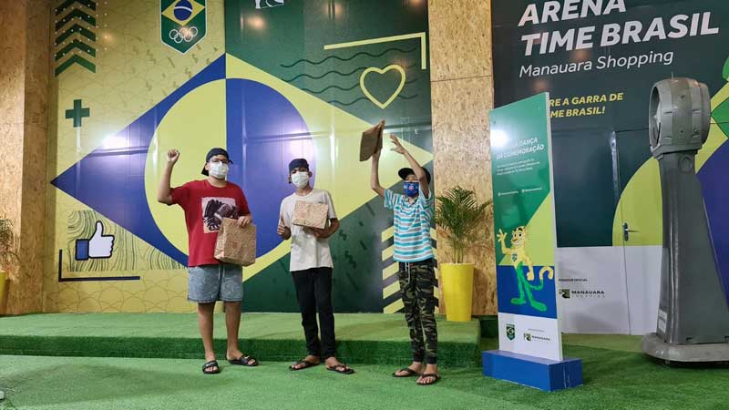 Aceitando o desafio do Manauara Shopping, que desenvolveu um jogo virtual para engajar o público durante a fase da competição mundial, eles criaram uma disputa a partir dos três games, que teve até premiação e fotos na Arena Time Brasil, espaço dedicado aos torcedores.