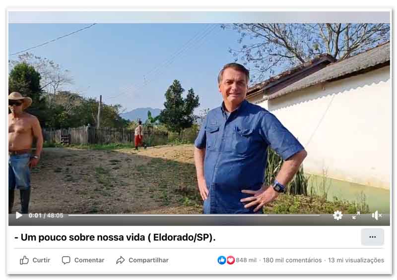 Em comparação, as lives mais assistidas de Bolsonaro acumulam milhões de espectadores. A mais visualizada (assista aqui) foi transmitida em agosto de 2021, quando o ex-presidente gravou em Eldorado (SP), cidade onde passou sua adolescência.