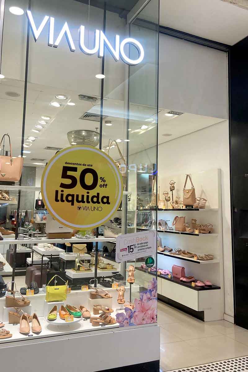 Os clientes poderão conferir a liquidação de lojas como Sapatinho de Luxo, Via Uno, Riachuelo, Arezzo, Pandora, MMartan, Aramis, Renner, Reebok e Usaflex, entre outras.