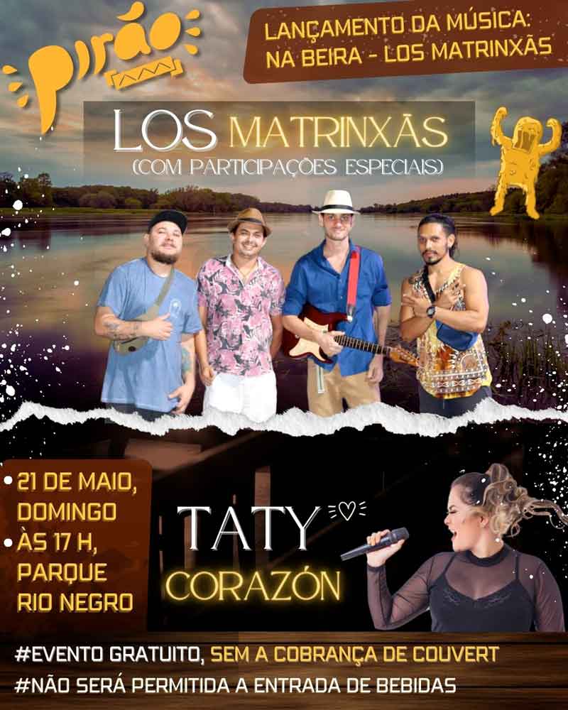 No próximo domingo (21), a banda Los Matrinxãs promete agitar o Parque Rio Negro, localizado na orla do bairro de São Raimundo, com um evento repleto de energia e diversão. O lançamento da música “Na Beira” será o ponto alto da festa, que contará com a participação de diversos artistas, incluindo Los Matrinxãs, Taty Corazón e convidados especiais.