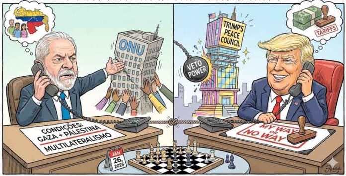 A conversa telefônica de 50 minutos ocorrida nesta segunda-feira, 26/1, entre o presidente Luiz Inácio Lula da Silva e o presidente dos Estados Unidos, Donald Trump, foi muito mais do que um protocolo diplomático. Ela representou um choque de visões sobre como o mundo deve ser governado nos próximos anos. Ao receber o convite para integrar o recém-criado Conselho da Paz, Lula não apenas hesitou, mas desenhou uma linha vermelha que separa o multilateralismo histórico da nova tentativa de hegemonia norte-americana.