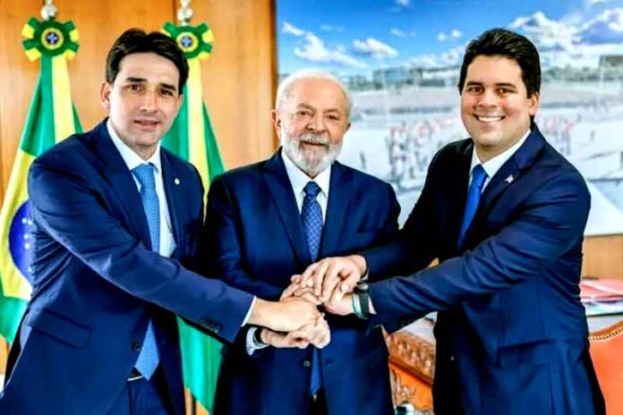 O presidente Lula (PT) com os ministros Silvio Costa Filho (Portos e Aeroportos) e André Fufuca (Esporte), ambos do Centrão – Foto: Ricardo Stuckert/PR