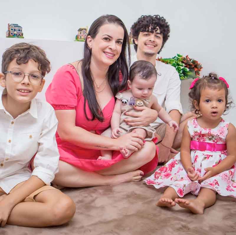 O quarto filho de Vanessa, Rafael, de 1 ano, veio de uma promessa: durante a pandemia, o marido pegou Covid 19 e teve de ser internado na UTI. “No momento do desespero, prometi a Deus que se meu marido não morresse eu teria mais um filho que ele tanto sonhava. Dois meses depois da recuperação dele eu estava grávida do Rafael”, relembra, dizendo que hoje é uma profissional e mãe mais feliz do mundo.
