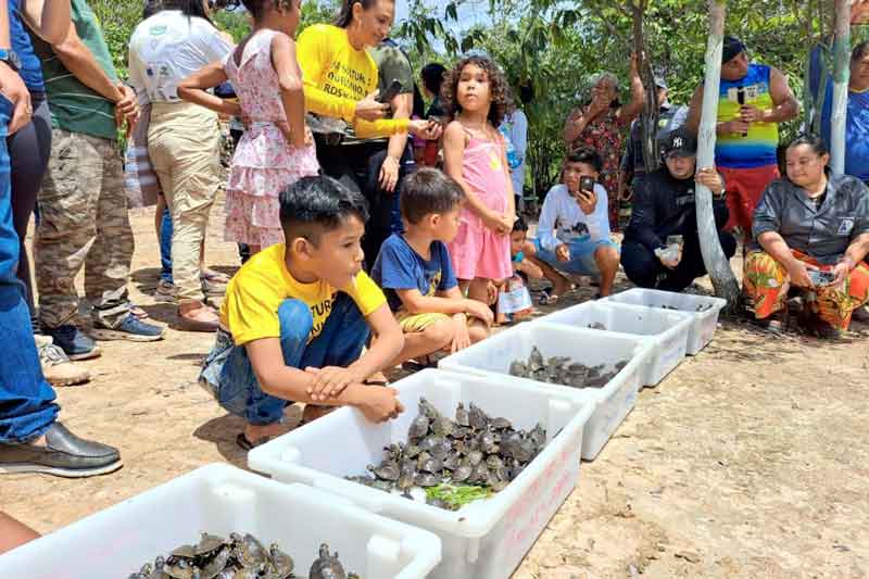 A ação faz parte do Programa Quelônios da Amazônia (PQA), realizado no Amazonas desde 2011. A soltura dos quelônios é um evento para as comunidades e simboliza o sucesso da integração dos comunitários para fazer acontecer a perpetuação da espécie daquela região.