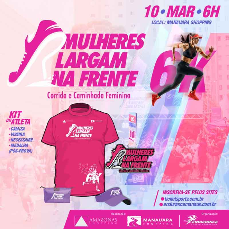 Estão abertas as inscrições para a primeira edição da Corrida e Caminhada “Mulheres Largam na Frente”, em Manaus, evento que será realizado no dia 10 de março, a partir das 5h45, em referência ao Dia Internacional da Mulher. A iniciativa é fruto de parceria entre o Manauara Shopping e o Amazonas Shopping, e promete marcar o calendário esportivo, celebrando a representatividade feminina.