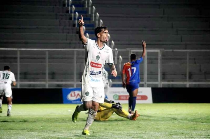 Léo Bahia comemora o seu gol marcado – Foto: Daniel Brandão