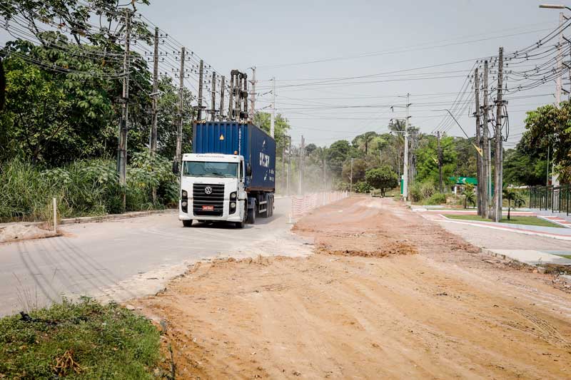 O lote 1, que contempla a bola da Suframa, com aproximadamente seis quilômetros de vias, recebeu asfalto, drenagem profunda, meio-fio, calçadas e sarjetas. Já a rotatória, com aproximadamente 900 metros lineares, recebeu todo o pavimento rígido.