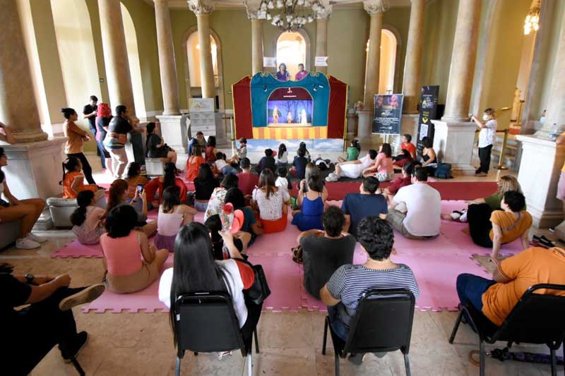 A história do jovem guerreiro indígena, Iporangaba, que recebe uma missão de resgatar Guaraci, o sol, engolido pela onça Xivi conquistou o público infantil que assistiu, neste sábado (7/5), “Onheama”, de João Guilherme Ripper, com assinatura da companhia paulista O Pequeno Teatro do Mundo. A apresentação gratuita aconteceu no hall do Teatro Amazonas, dentro da programação do 24º Festival Amazonas de Ópera (FAO).