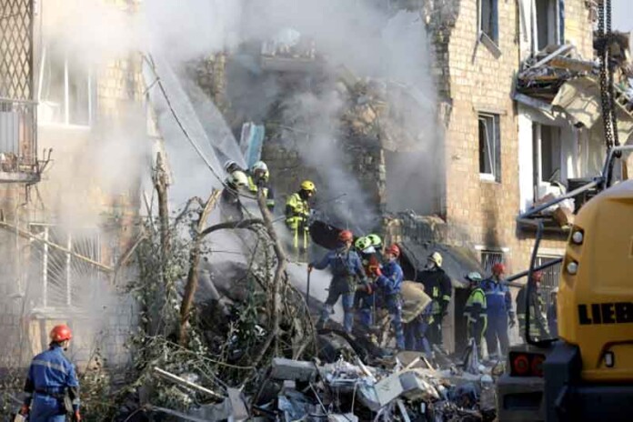 O ataque atingiu áreas centrais da capital e provocou danos significativos na representação da União Europeia (UE) e no escritório do British Council. Na manhã desta quinta, equipes de emergência e moradores trabalhavam para retirar os escombros do centro de Kiev após os ataques.