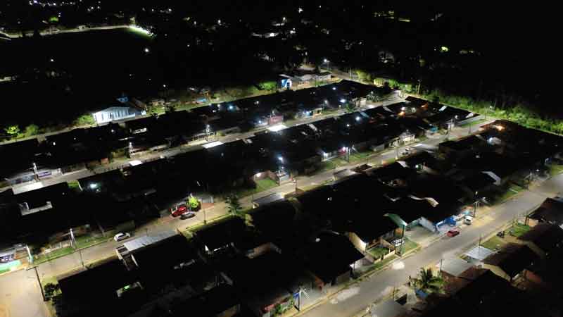 Em Novo Airão, além de substituir as lâmpadas antigas de vapor de sódio, de mercúrio ou mistas por luminárias de LED, o governo está levando iluminação pública pela primeira vez a algumas áreas. É o caso dos bairros Alemão e Chicó, que juntos receberam 170 pontos de iluminação pública de LED.