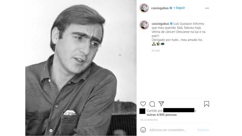 A informação foi confirmada por seu sobrinho, o também ator Cássio Gabus Mendes, no Instagram. “Informo que meu querido Tatá, faleceu hoje, vítima de câncer! Descanse na luz e na paz!!! Obrigado por tudo, meu amado tio”, escreveu.