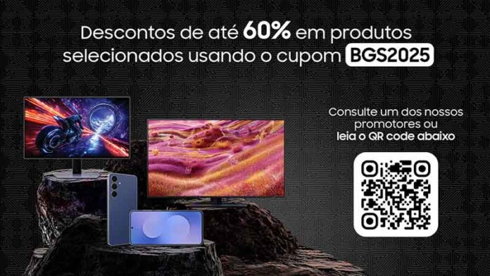 Samsung, como patrocinadora da Brasil Game Show 2025, preparou um estande de 1.000 m² com todo o seu portfólio gamer e experiências imersivas por meio de diversos jogos e ativações. E para conectar a experiência do evento à realidade de cada jogador, a marca preparou uma promoção especial para produtos do seu ecossistema gamer. Com descontos de até 60% em produtos selecionados de todas as categorias, como o smartphone Galaxy S25 FE, o monitor Odyssey OLED G6 500Hz, a Samsung Vision AI TV 65″ OLED 4K S90F, o Galaxy Tab S11 Ultra e o notebook Galaxy Book4 Ultra, essa é a oportunidade perfeita para quem quer completar o seu ecossistema gamer. Basta usar o cupom BGS2025 na Loja Online Samsung ou no app Samsung Shop.