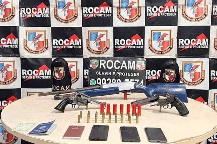 De acordo com informações do capitão PM da Rocam, Rafael Lima, por volta das 21h a unidade especializada recebeu uma denúncia informando a presença de um grupo armado em uma residência, naquele bairro.