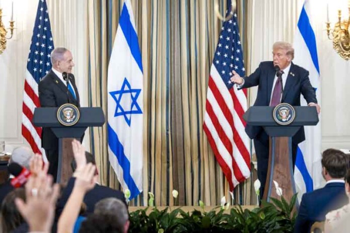 O primeiro-ministro de Israel, Benjamin Netanyahu, declarou que não aceita a criação de um Estado palestino durante uma reunião com o presidente dos Estados Unidos, Donald Trump. Essa afirmação ocorreu em meio a discussões sobre um plano de paz proposto por Trump, que ainda não foi aceito pelo grupo Hamas. O plano sugere um caminho para a soberania palestina. O texto, que ainda está sendo debatido, foi mal recebido por alas conservadoras em Israel, incluindo a coalizão governista de Netanyahu.