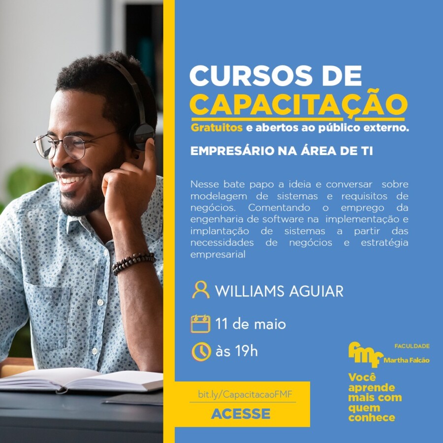 No dia seguinte, dia 11, o professor Williams Aguiar abordará o tema “Empresário na área de TI” para atualizar os internautas sobre os sistemas e requisitos de negócios com interface na engenharia de software. A aula vai ao ar às 19h.