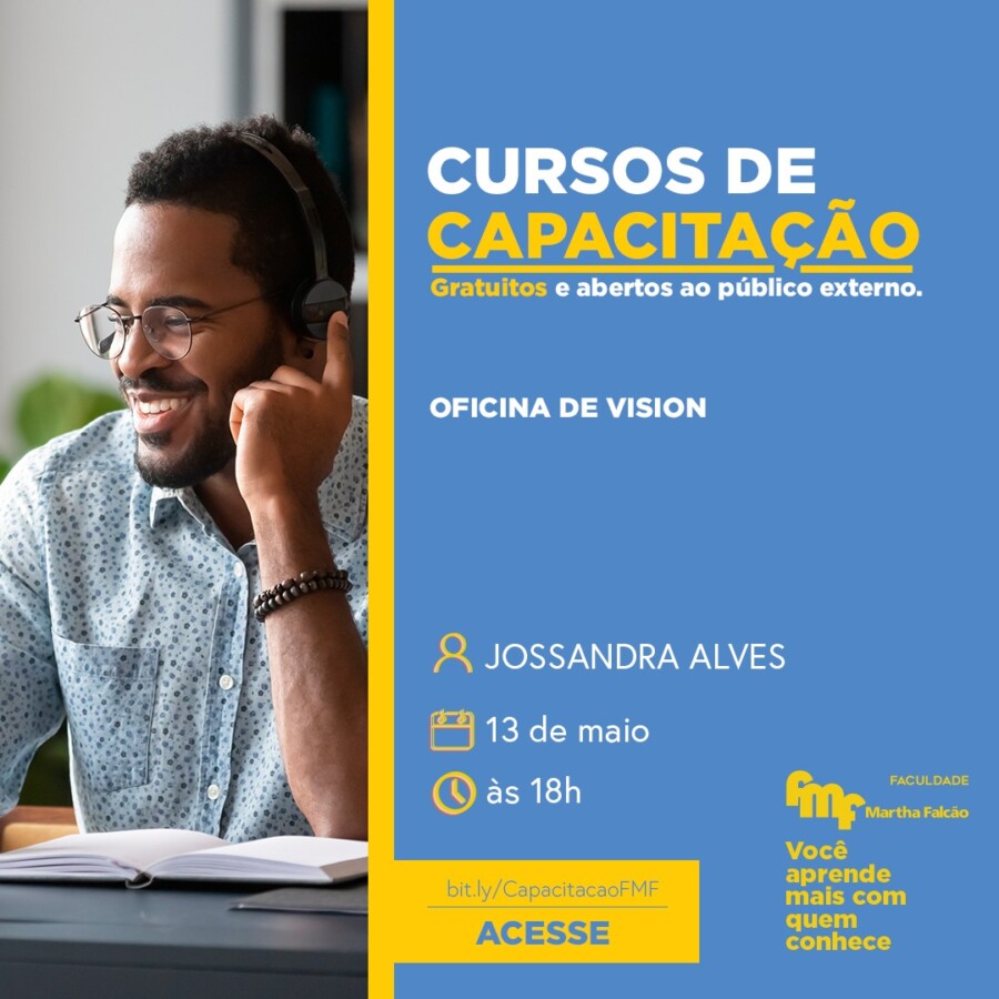 O ciclo de cursos gratuitos segue no dia 13 de maio com a “Oficina de Vision”, às 18h, com a aula da professora Jossandra Alves.