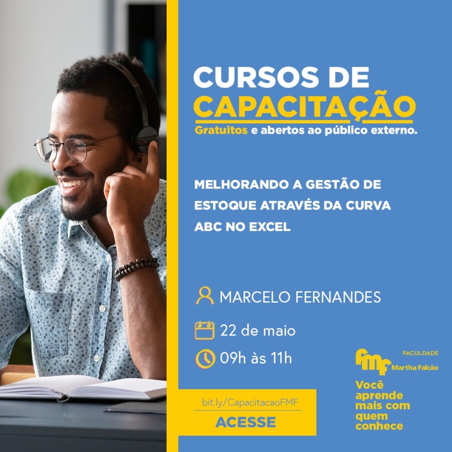 O circuito de oficinas gratuitas se encerra no dia 22 de maio, com a disponibilidade de dois cursos virtuais. Das 9h às 11h, o internauta vai ter acesso à oficina “Melhorando a gestão de estoque por meio da curva ABC no Excel”. onde terá a chance de tirar dúvidas na área com o docente Marcelo Fernandes.