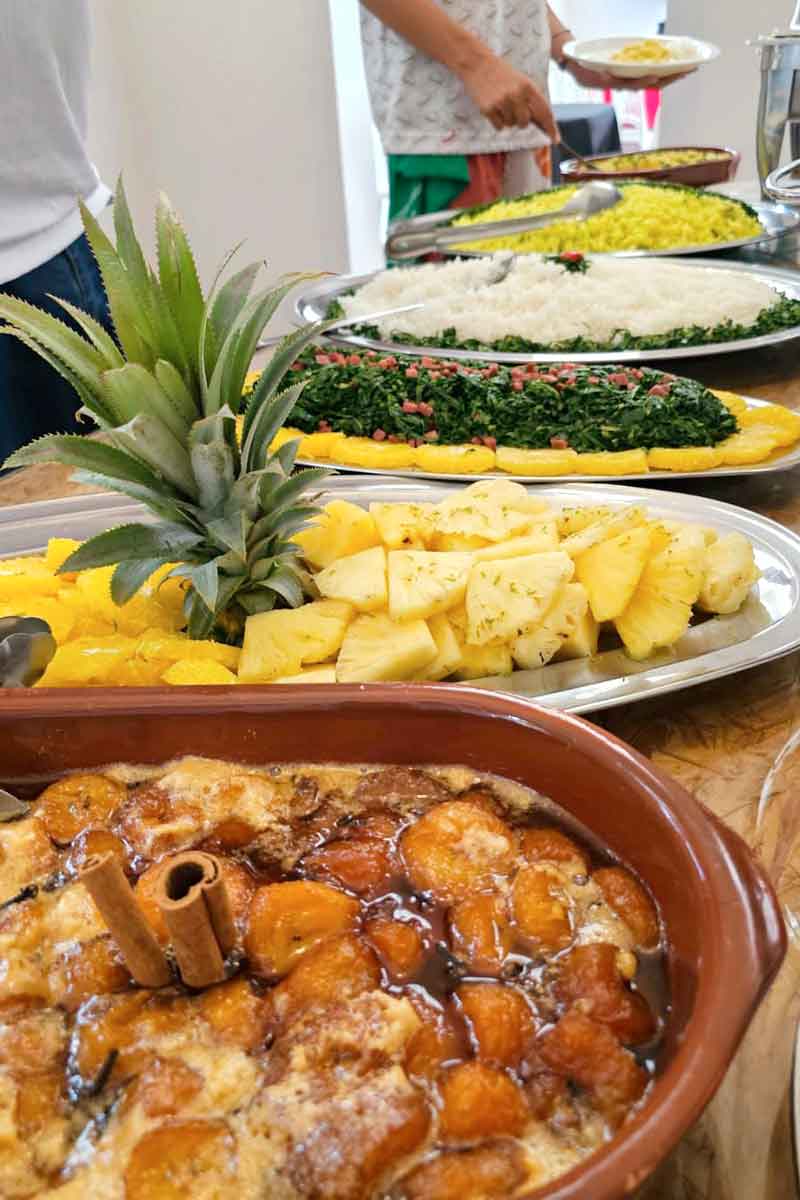 O cardápio, assinado pela chef Tatiana Santana, oferece uma feijoada servida aos domingos (R$ 40 individual e R$ 70 para duas pessoas) e um menu especial com pratos de “fundamentos de axé”, como Emincé de Filé com Fritas, Bolinho Encruzilhada, Coxinha de Bode, Pastel de Queijo e Presunto, Adun (farofa de fubá com molho iorubá) e Ekuru (bolinhos de feijão-fradinho com ragu apimentado).