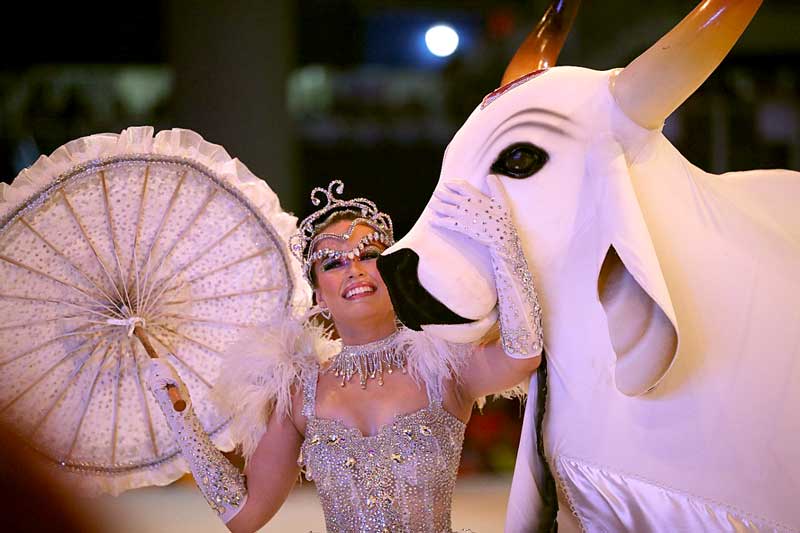 A delicadeza e o bailado de Valentina Coimbra conquistaram a nação vermelha e branca do Garantido. Aos 20 anos, a bela, natural de Santarém (PA), conta que o carinho pelo boi do coração na testa vem desde a infância e, na família Coimbra, é passado ao longo de gerações.