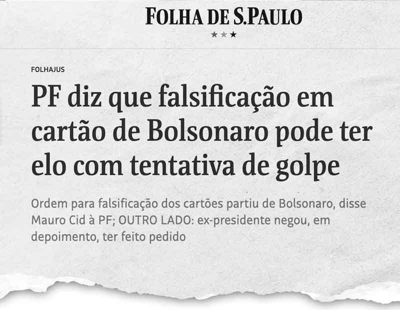 O tribunal máximo do atual sistema judiciário do Brasil é responsável direto pela morte na prisão de um acusado que precisava, com base em atestados médicos e a pedido do MP, receber tratamento de urgência em hospital; o ministro Alexandre de Moraes negou, repetidamente, a sua saída para internação. A lei manda que os acusados pelo quebra-quebra sejam julgados em primeira instância, e não no STF. Também aí, a lei não vale. Deputados federais são chamados à Polícia Federal para “explicarem” declarações feitas em plenário, e no exercício dos seus mandatos. Sofrem revistas em seus gabinetes; um deles está preso, condenado a nove anos de prisão. A Constituição proíbe, mas há censura. É coisa que não acaba mais, enfim, e só pode ficar pior. Terão, a um momento qualquer no futuro, de se mostrar na frente de todo o mundo civilizado como o tribunal que vai condenar um ex-presidente sem ter nenhuma prova capaz de ser levada a sério numa democracia — só manifestos da polícia e da imprensa. O último é uma obra-prima conjunta. “PF diz que falsificação em cartão de Bolsonaro pode ter elo com tentativa de golpe”, revela a Folha de S.Paulo.