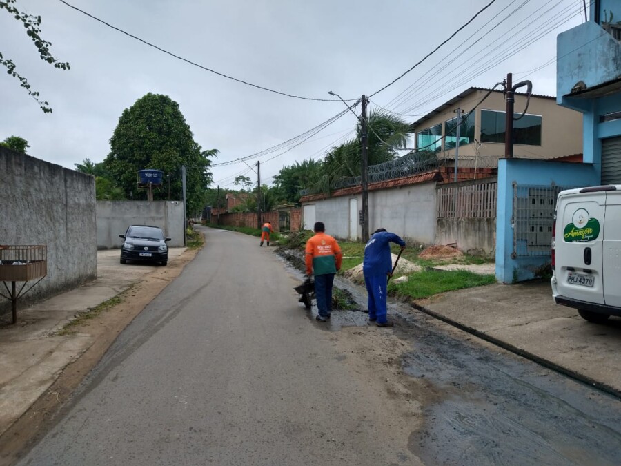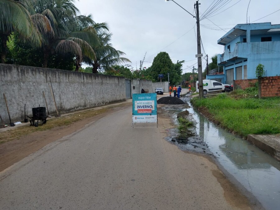 O bairro Colônia Santo Antônio, na zona Norte de Manaus, também recebe serviços de recuperação asfáltica. Na rua São Jorge e avenida Francisco Queirós, quase 60 toneladas de massa asfáltica serão aplicadas.