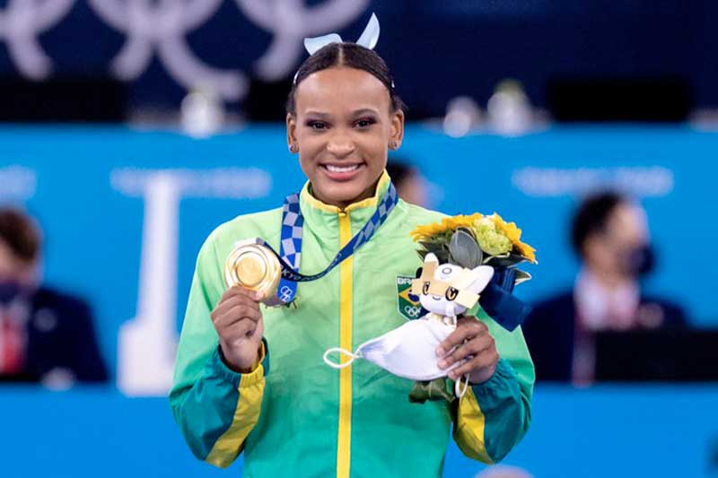 Rebeca Andrade, da ginástica artística, foi a primeira mulher brasileira a subir duas vezes no pódio em uma mesma Olimpíada (foi ouro no salto e prata no individual geral).