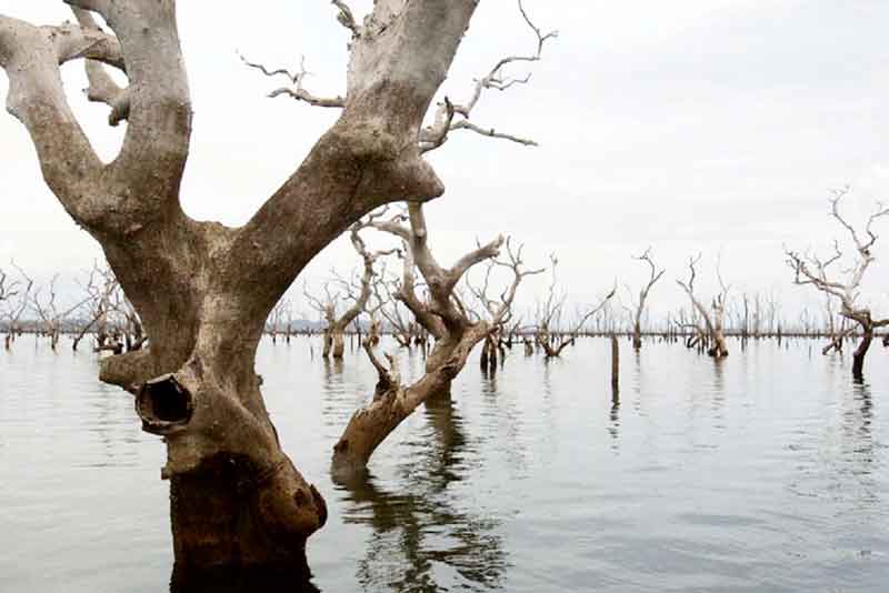 Árvores mortas emergem como estacas, formando um imenso “cemitério de paliteiros” que se estende por quilômetros. Estudos do INPA mostram que o impacto não se limita ao lago: as florestas de igapó do rio Uatumã continuam morrendo por causa das mudanças artificiais no fluxo das águas.