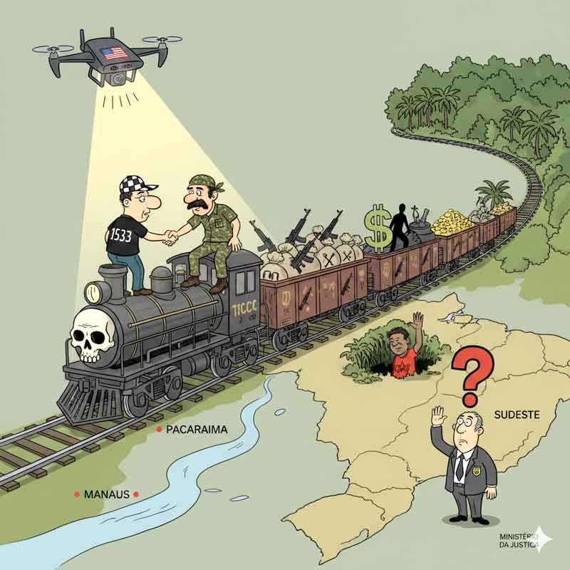 O grupo Tren de Aragua firmou aliança operacional com o PCC e mantém conexões com o Comando Vermelho, controlando rotas de drogas e armas que entram por Pacaraima e seguem para Manaus e o Sudeste.