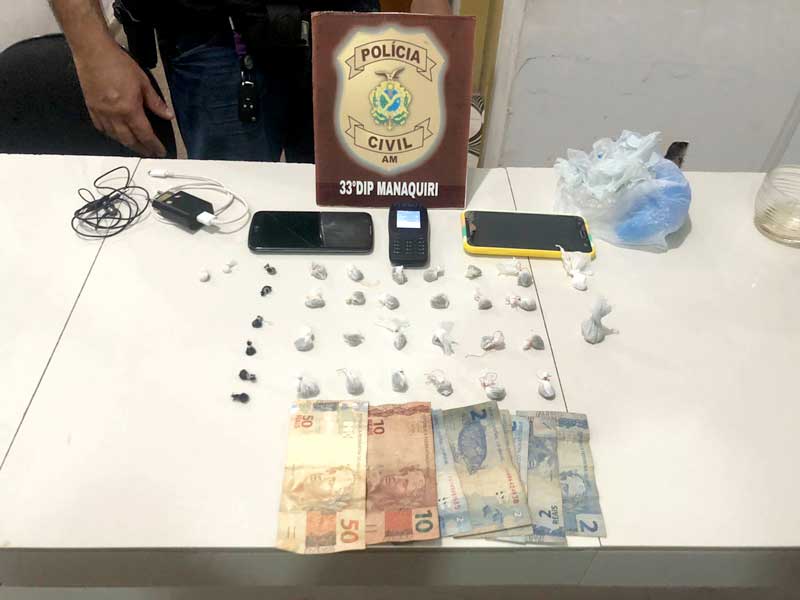 A Polícia Civil do Amazonas (PC-AM), por meio da 33ª Delegacia Interativa Polícia (DIP) de Manaquiri (a 60 quilômetros de Manaus), prendeu em flagrante, no sábado (6/11), por volta de 0h15, Davi Marques de Lima, 20, conhecido como “Pelezinho”, e Mizarq da Silva Bezerra, 22, pelos crimes de tráfico de drogas e associação para o tráfico. As prisões ocorreram na rua Silvino Raimundo, bairro Laranjeiras, naquele município.