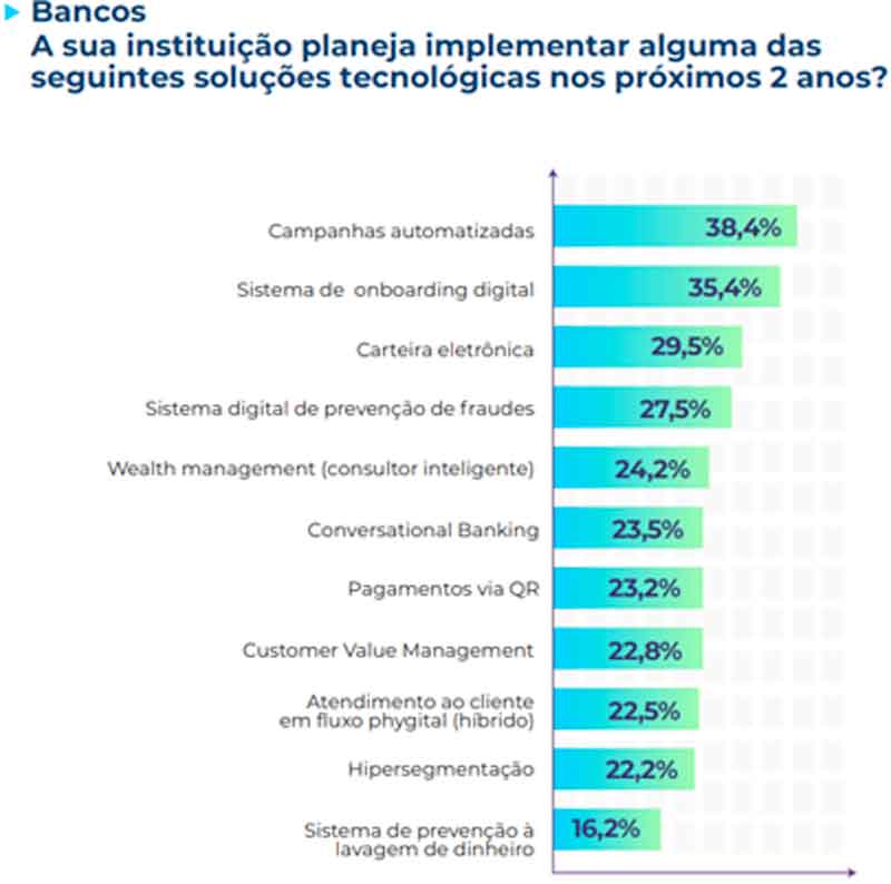 Os planos para desenvolver recursos de IA para atendimento ao cliente e automação de processos em 2024 foram relatados por mais da metade dos entrevistados. Também, a existência de uma rede de pagamentos digitais madura, os níveis de participação bancária e a qualidade da conectividade digital são fatores que impulsionam diferentes prioridades em diferentes países: alguns têm vantagens geográficas ou econômicas e de sistemas bancários robustos para o consumidor. O levantamento reitera que o Brasil tem sido um epicentro de inovação financeira e tecnológica na região há vários anos, abrigando cinco dos dez maiores bancos da América Latina e uma promissora indústria de fintechs também está crescendo no México.