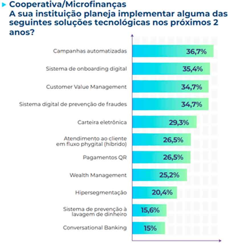 A segunda prioridade de investimento para bancos e cooperativas de crédito/instituições de microfinanças são os sistemas de onboarding online, enquanto para as empresas de tecnologia, é a implementação de soluções de atendimento ao cliente em um fluxo “phygital” (equilíbrio entre canais físicos e digitais).
