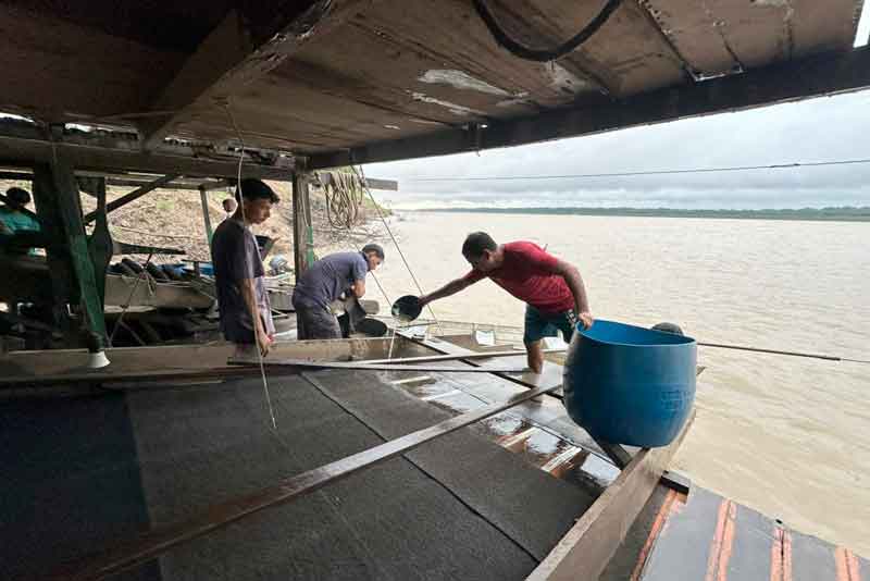 - Luiz Gonzaga Nascimento da Silva, 55 anos, que garimpa desde os 12, afirma que as enchentes têm alagado completamente as áreas de várzea, destruindo plantações e até mesmo as casas. Ele e outros ribeirinhos usam as balsas como moradia alternativa durante o período das cheias.