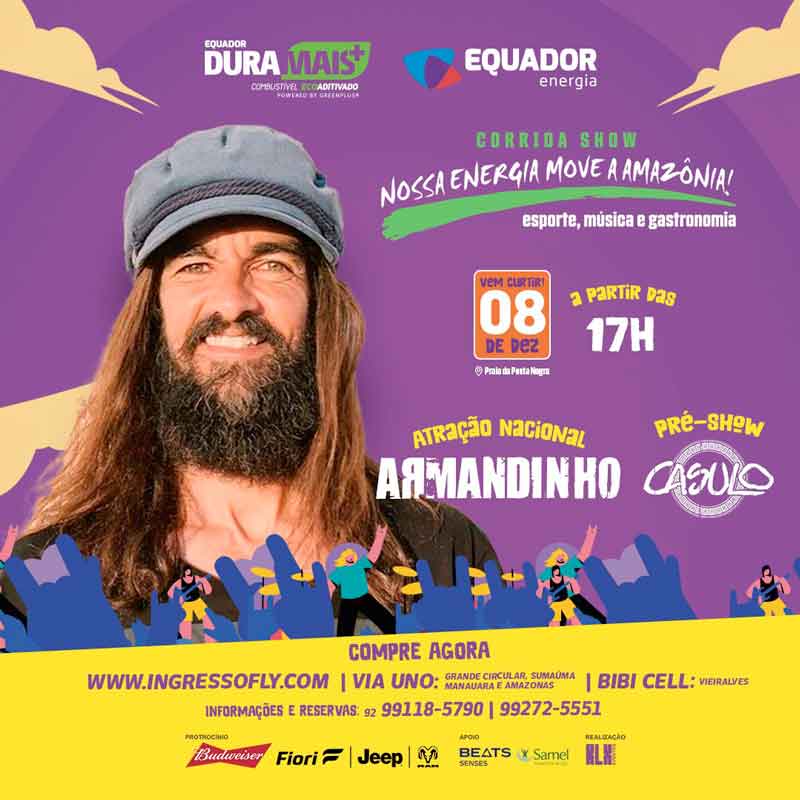 “Nossas expectativas são as melhores possíveis. É uma corrida-show que já está no calendário do Amazonas, e, dessa vez, mais especial ainda, na Praia da Ponta Negra, com a banda Casulo, que fez história na cena local nos anos 2000, junto com Armandinho. Então, promete ser um fim de tarde e noite inesquecível”, comemora Rodrigo Paes Leme, um dos sócios da RLX Eventos.